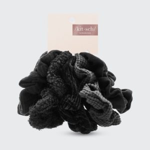 These adorable scrunchies are the perfect addition for your ponytail or wrist! Assorted Textured Scrunchies card features 5 hair scrunchies in assorted Black tones.