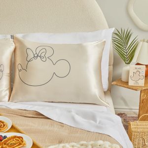 - Get some beauty sleep with this satin pillowcase featuring playful line drawings of your best friends. Mickey and Minnie